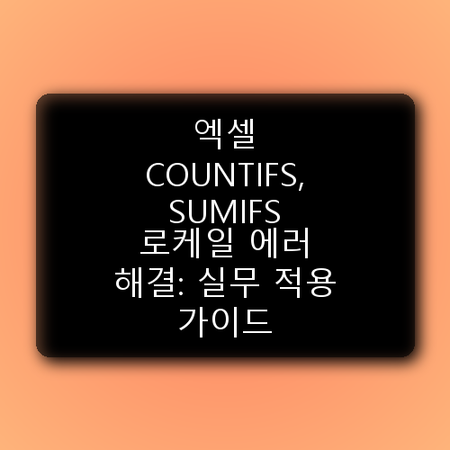 요약하면, 엑셀의 COUNTIFS와 SUMIFS 함수에서 발생하는 로케일 관련 오류는 날짜 형식, 함수 인수 구분 기호, 숫자 서식, 문자 인코딩 등 여러 가지 요소가 복합적으로 작용하여 발생하는 문제로, 각각의 원인을 하나씩 점검하고 해결해 나가는 것이 핵심이다. 각 단계별로 명확한 절차를 마련하여, 오류 발생 시 신속하게 대응할 수 있도록 준비하는 것이 중요하다.