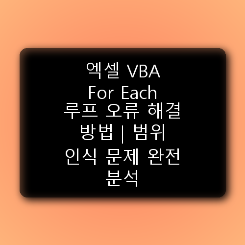 엑셀 VBA에서 For Each 구문은 셀 또는 객체 집합을 손쉽게 반복 처리할 수 있는 강력한 도구이다. 그러나 특정 셀 범위를 인식하지 못하는 문제가 발생할 경우, 작업의 효율성에 큰 차질이 생길 수 있다. 본 글은 이러한 문제의 원인과 다양한 해결 방법, 그리고 예방 팁을 단계별로 제시하여 독자들이 실무에서 발생할 수 있는 VBA 오류를 신속히 해결할 수 있도록 돕는 것을 목적으로 한다.